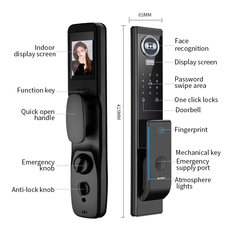 Wyposażony w wewnętrzny wyświetlacz o wysokiej rozdzielczości, zamek ma obudowę ze stopu cynku o wysokiej wytrzymałości (zabezpieczenie przed włamaniem i rdzą) i konstrukcję o niskim poborze mocy (żywotność baterii ponad 12 miesięcy z alarmem o niskim poborze mocy). Jego prosty i elegancki wygląd pasuje do różnych stylów dekoracji.
